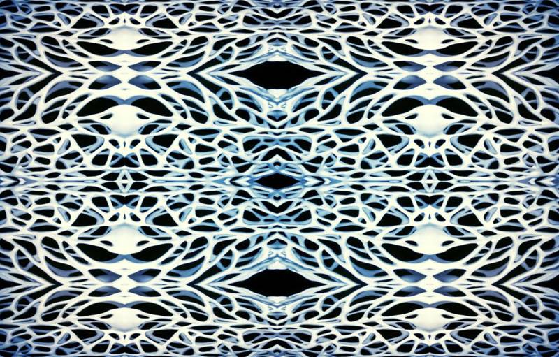 The relief is a hybrid art form: somewhere between painting and sculpture. The frame consists of a cell structure, which is related to that of the human body, and geometric patterns that occur in nature.
